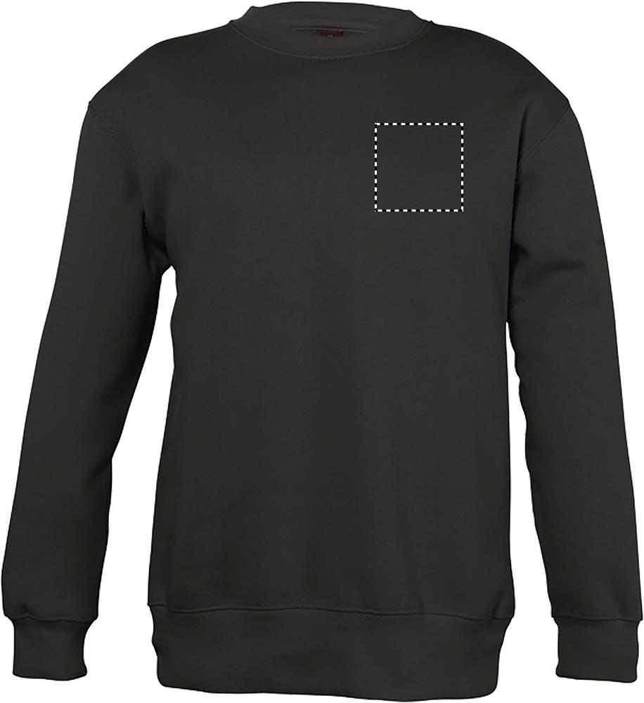 SOL'S NEW SUPREME Kinder Sweater 280g/m². 50% katoen - 50% polyester. Verstevigingsband in de nek, manchetten, kraag en onderkant in ribboord met elastaan. Set in sleeves. Cut and sewn. Maten - 4 jr: 96-104cm (L), 6 jr: 106-116cm (XL), 8 jr: 118-128cm (XXL), 10 jr: 130-140cm (3XL), 12 jr: 142-152cm (4XL)
